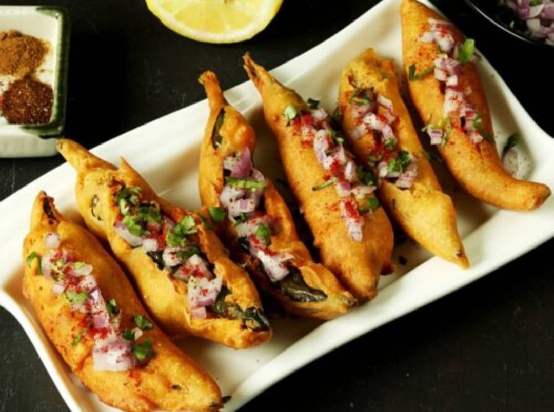 Crispy, golden-fried stuffed green chili fritters. The perfect spicy snack.